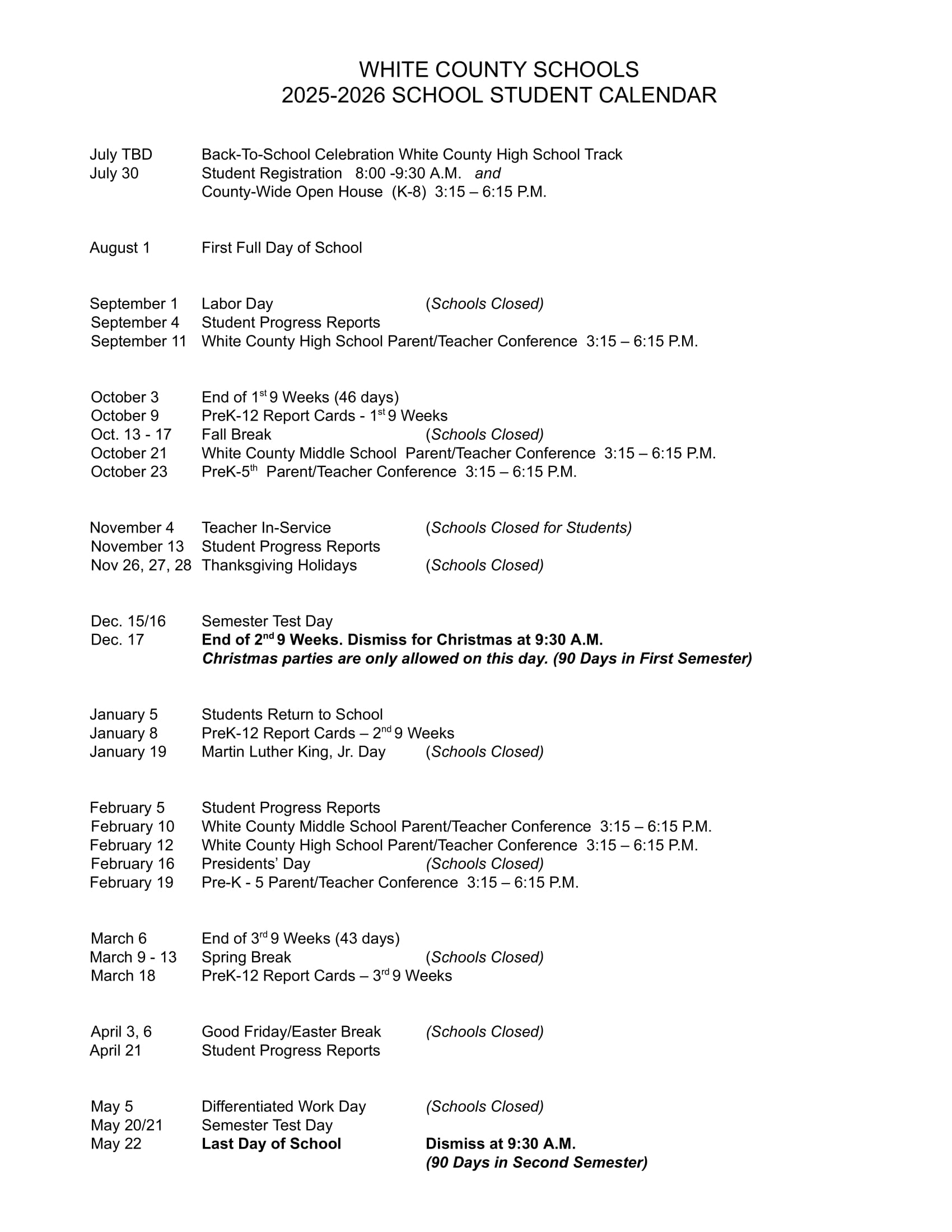 White County Schools TN Calendar 25 26 Revised PDF EduCounty