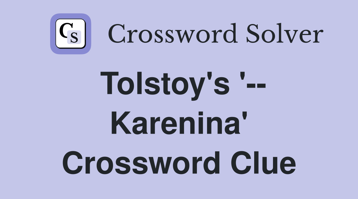 Tolstoy #39 s #39 Karenina #39 Crossword Clue Answers Crossword Solver