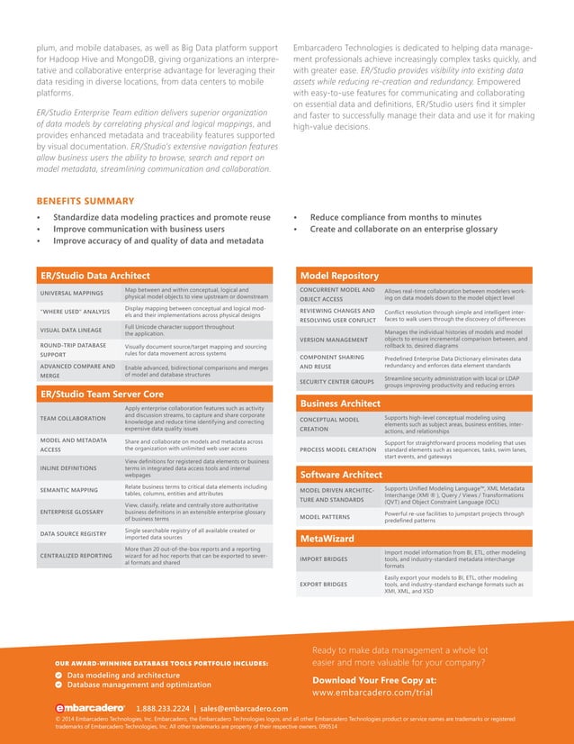 ER/Studio Enterprise Team Edition Datasheet PDF