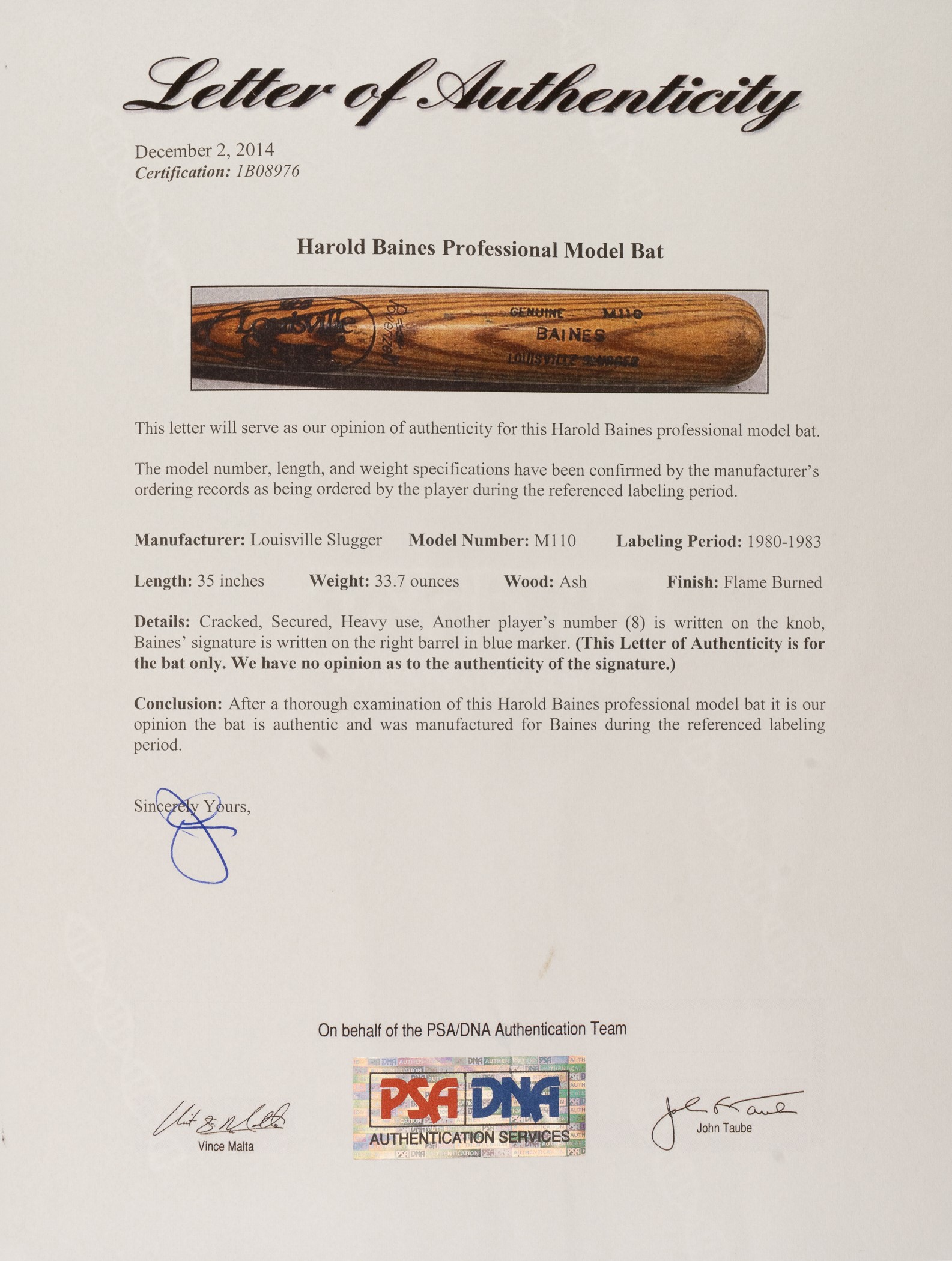1980 1983 Harold Baines Chicago White Sox Signed Game Used Bat PSA