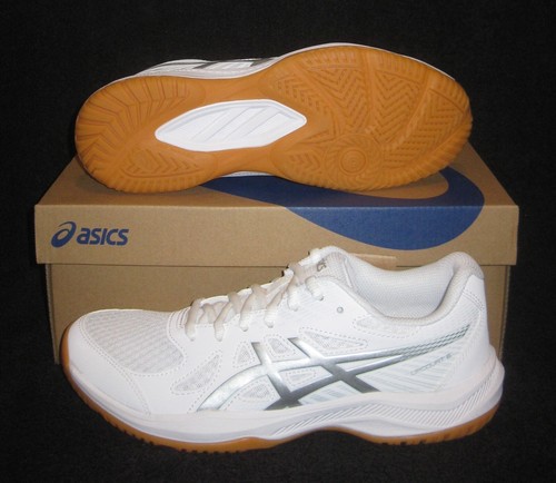 ASICS UPCOURT 6 VOLLEYBALL COURT SHOES WOMEN #39 S SZ 8 5 WHITE SILVER