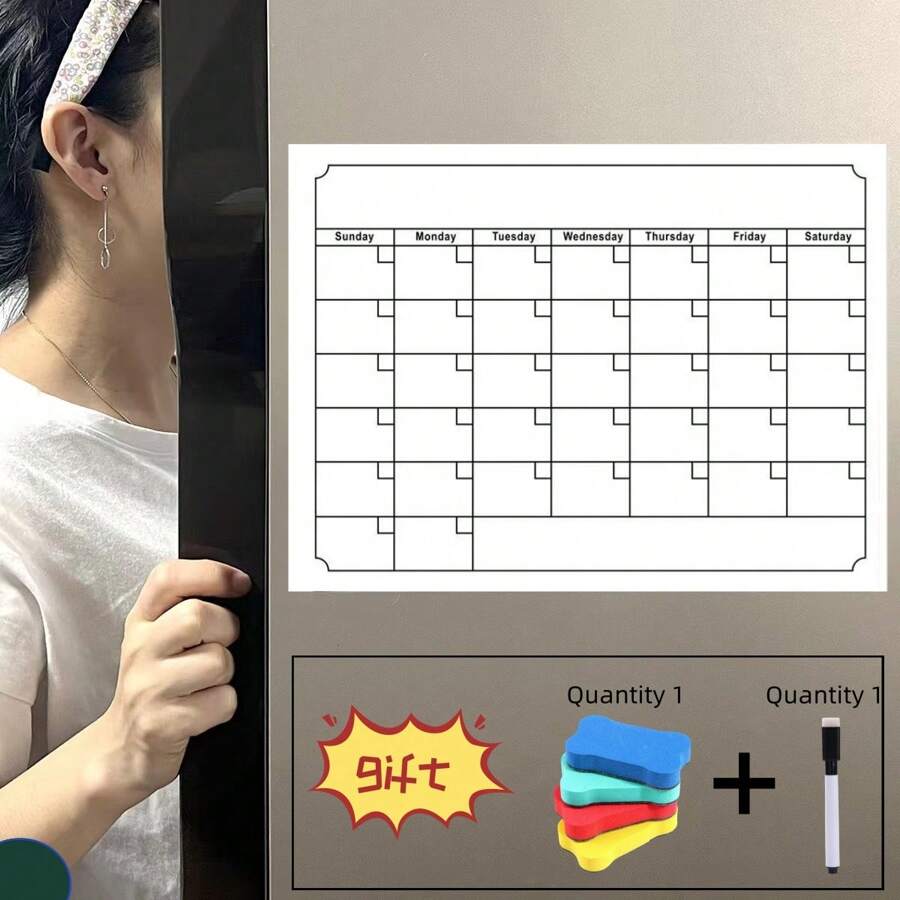1pc Fridge Calendar Magnetic Dry Erase Calendar Whiteboard Calendar For