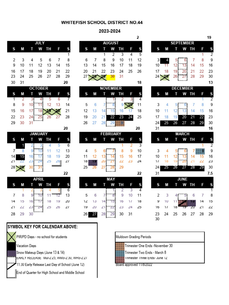 School Calendar Whitefish Township Community Schools