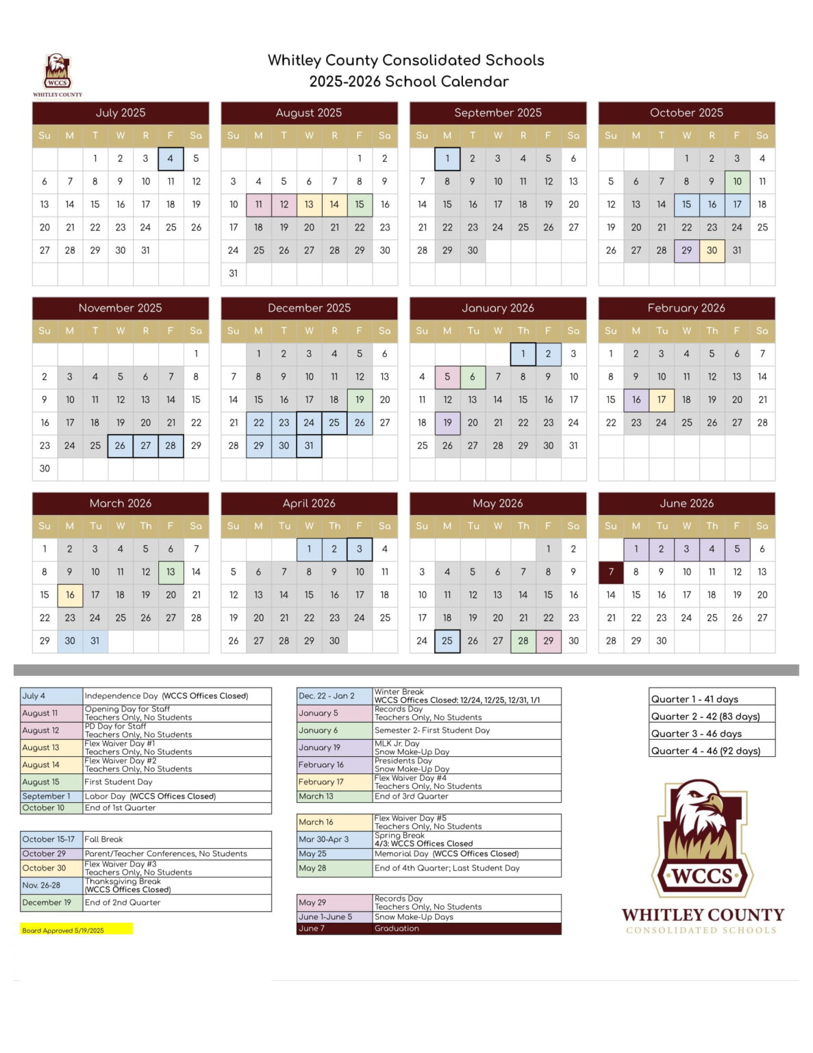 Whitley County Consolidated Schools Shares 2025 2026 Academic Calendar