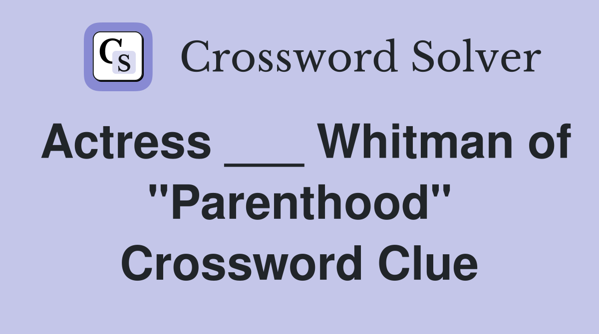 Actress Whitman of quot Parenthood quot Crossword Clue Answers