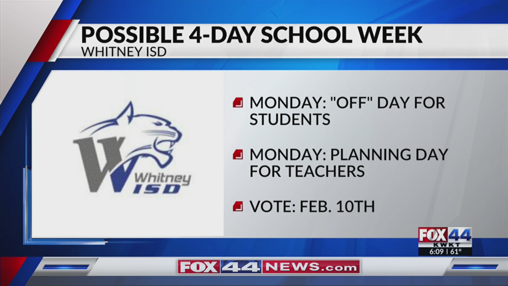 Whitney ISD considering four day school week