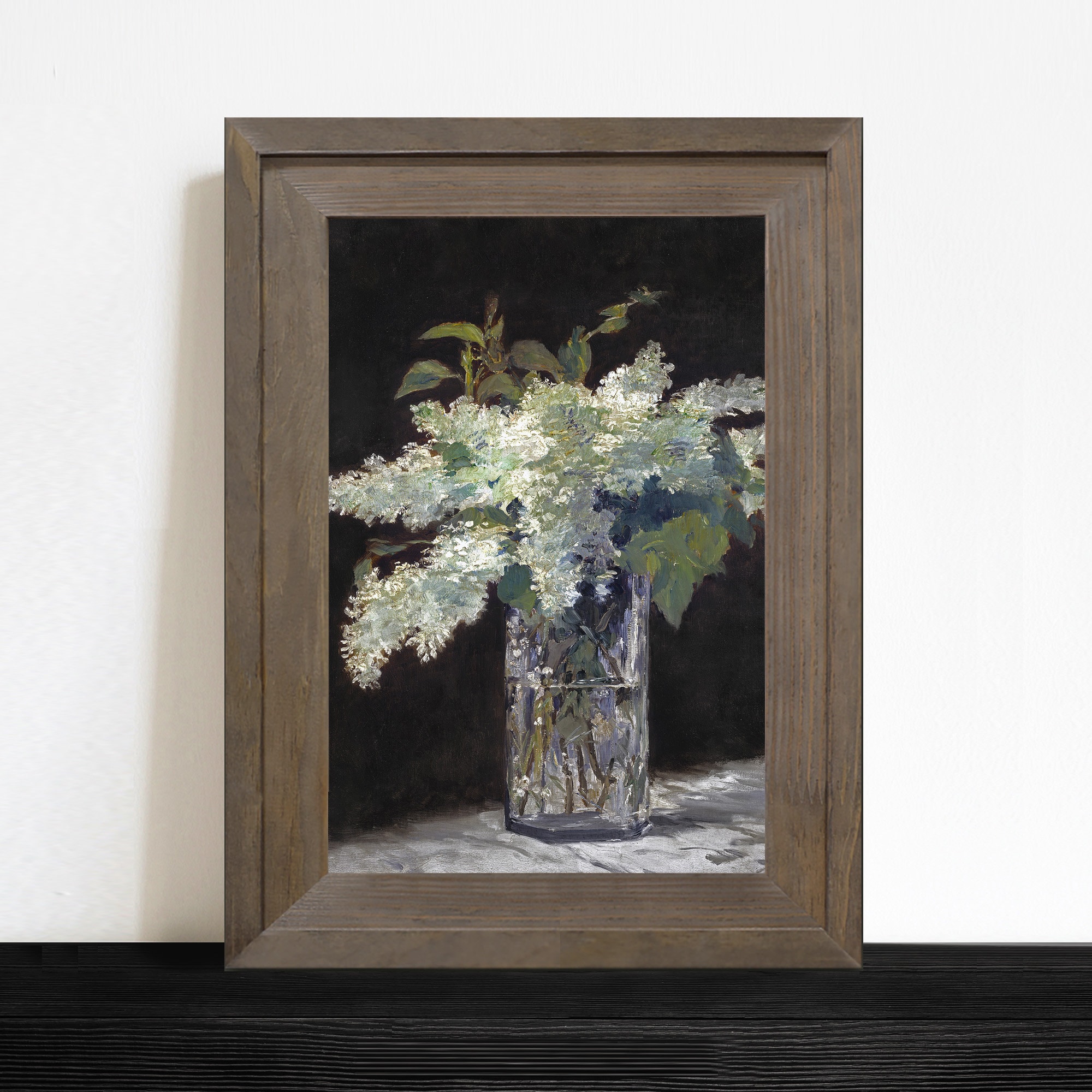 Lilac Bouquet in Vase Dark Background Drawing Illustration Vintage