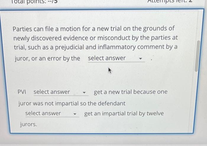 Parties can file a motion for a new trial on the Chegg com