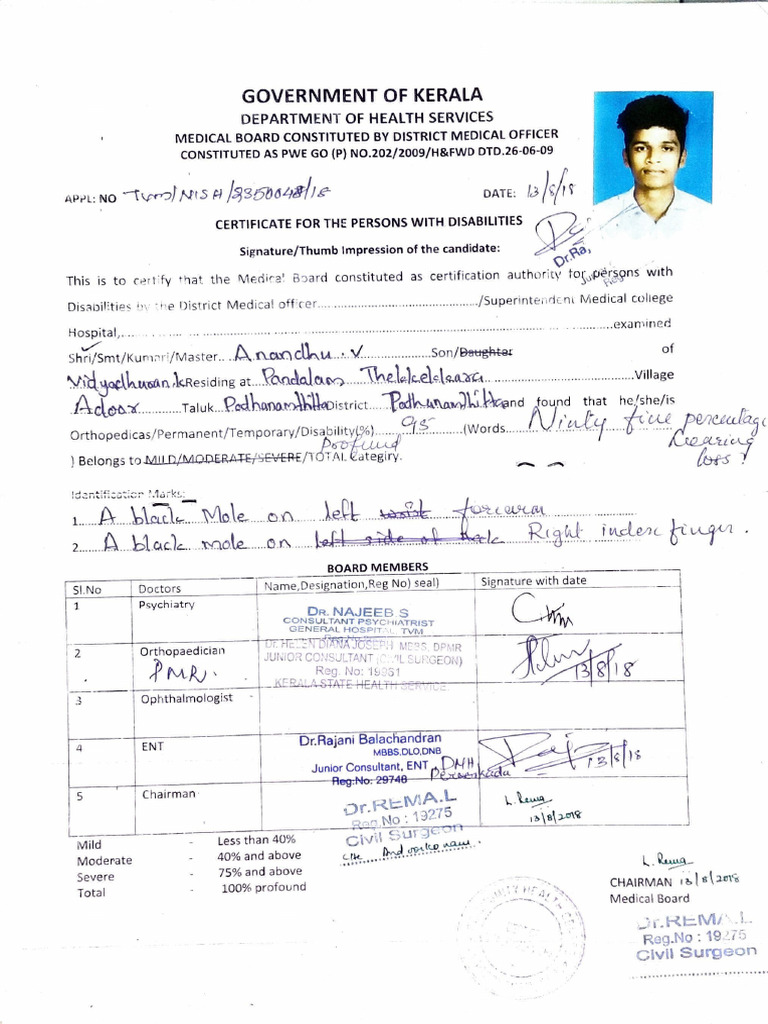 Anandhu Disability Certificate PDF Practice Of Medicine Psychiatry