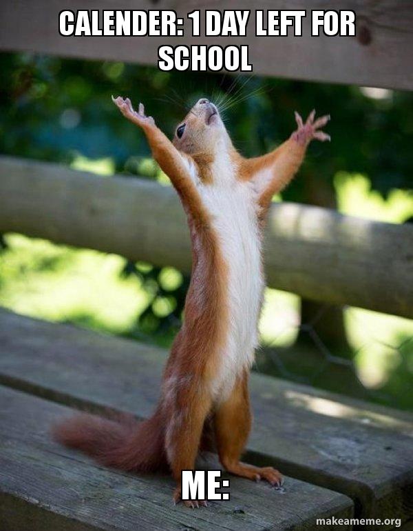 Calender: 1 day left for school Me: Happy Squirrel Meme Generator