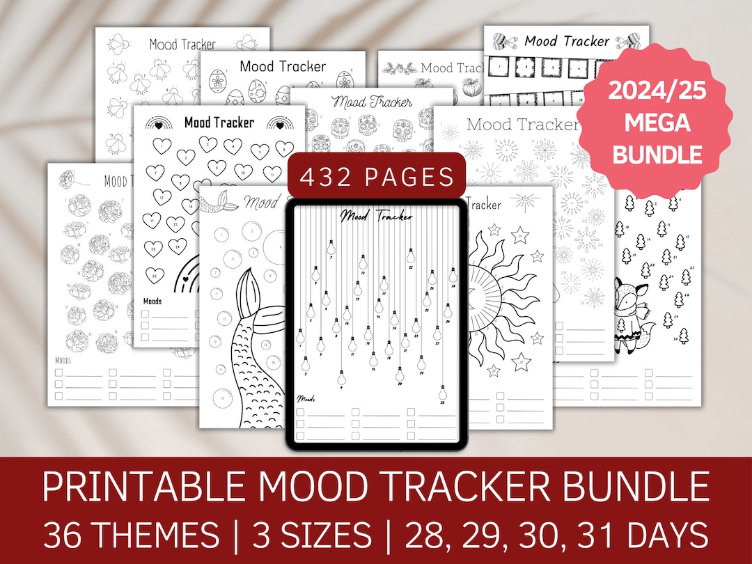 Monthly Mood Tracker Printable Template or Digital Mood Planner Mood