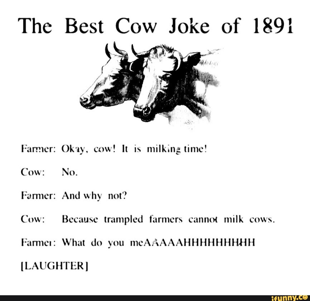 The Best Cow Joke of 1891 Farmer: Okay cow It is milking time Cow