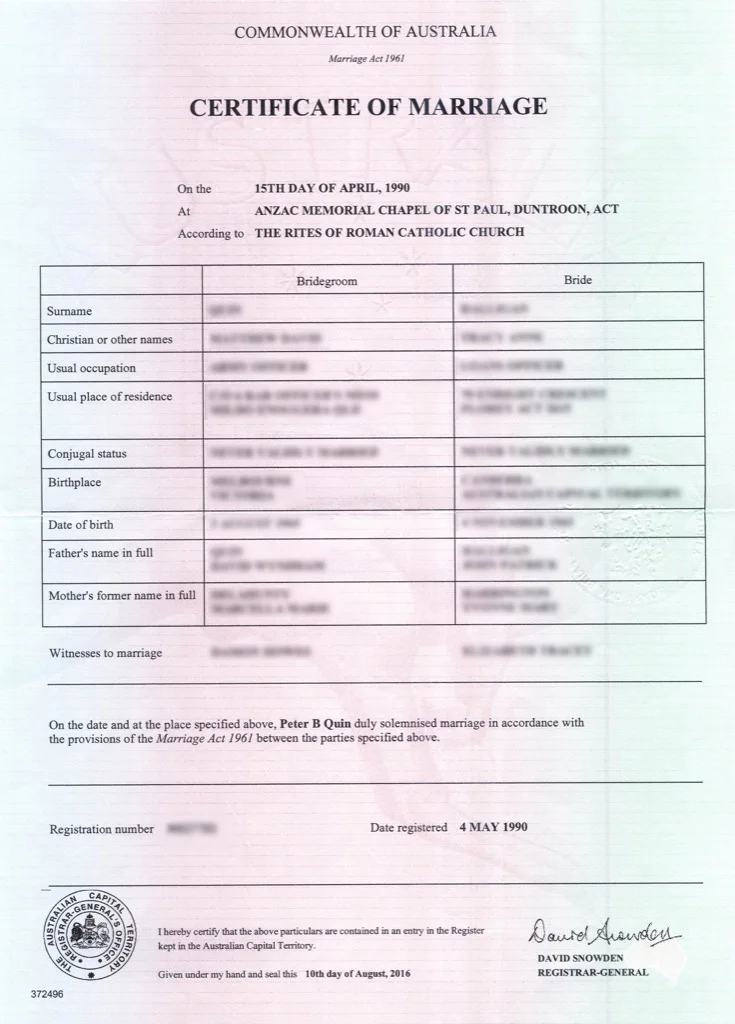 Marriage Certificate Queensland Museum