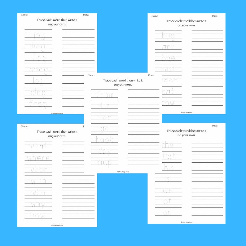 Sight Words Tracing Worksheets: Prek 1st Grade Handwriting Practice