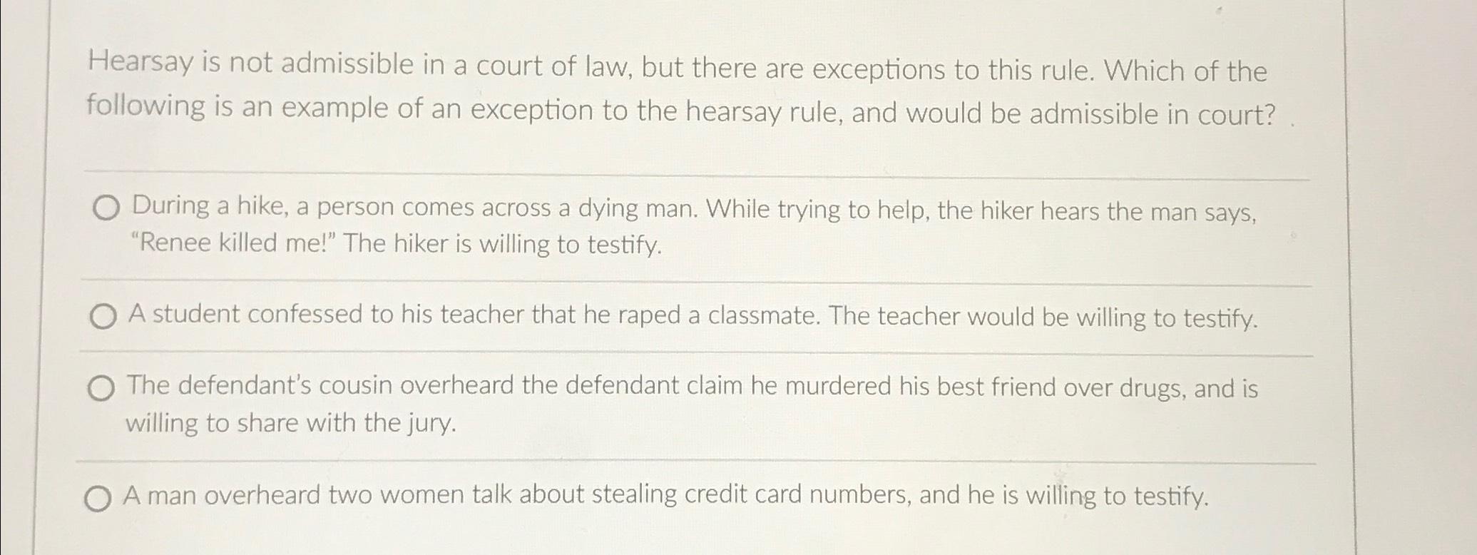 Solved Hearsay is not admissible in a court of law but Chegg com