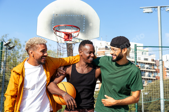 Training Basketball and Friends at a Basketball Court Having Fun in