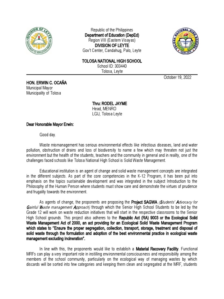 Letter Project Sagwa PDF Municipal Solid Waste Waste