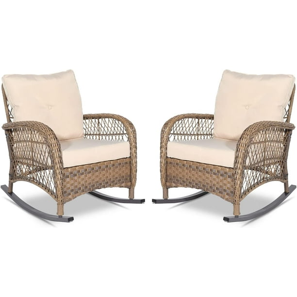 VIVIJASON 2 Piece Patio Wicker Rattan Rocker Chair Outdoor Rattan