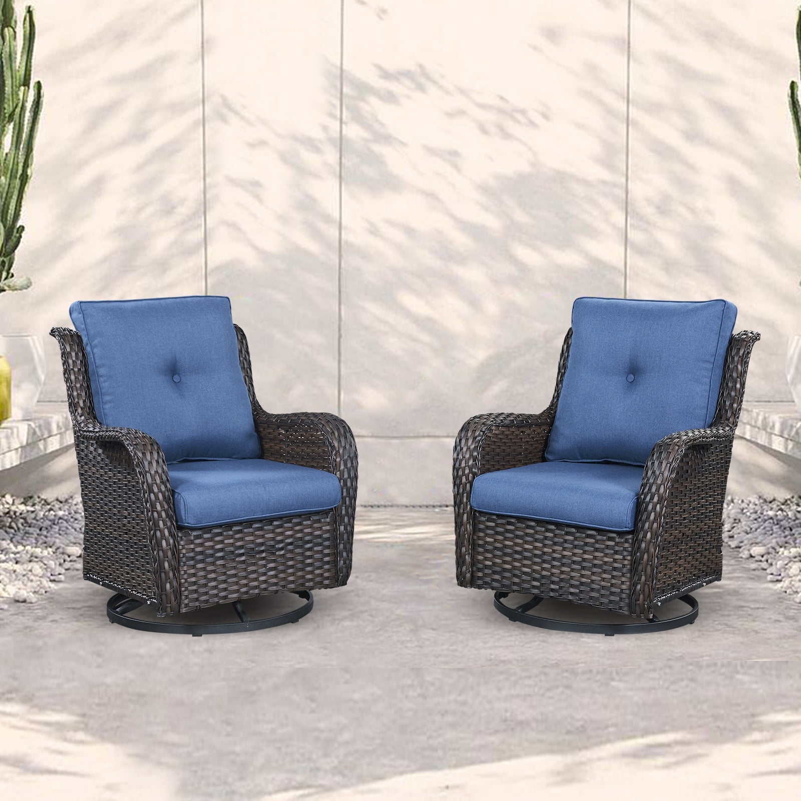Pocassy Outdoor Wicker Glider Swivel Club Chairs (Set of 2) Brown/Blue