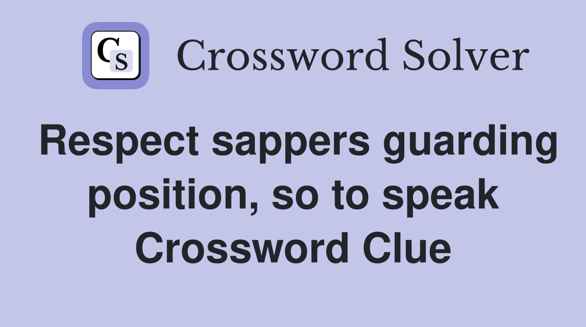 Respect sappers guarding position so to speak Crossword Clue Answers