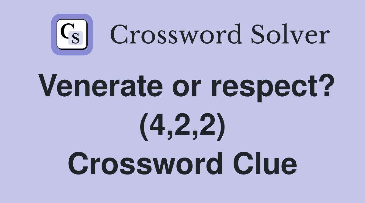 Venerate or respect? (4 2 2) Crossword Clue Answers Crossword Solver