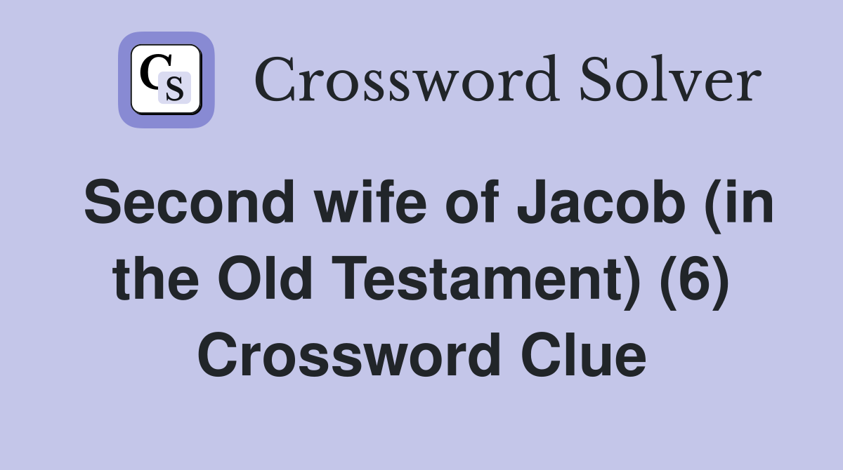Second wife of Jacob (in the Old Testament) (6) Crossword Clue