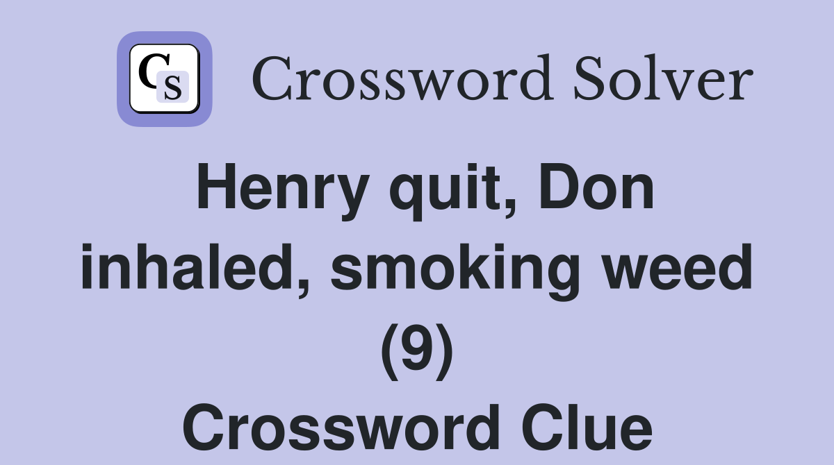 Henry quit Don inhaled smoking weed (9) Crossword Clue Answers