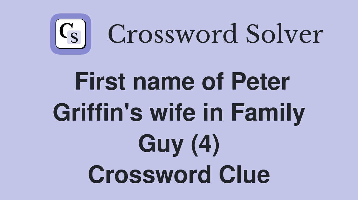 First name of Peter Griffin #39 s wife in Family Guy (4) Crossword Clue