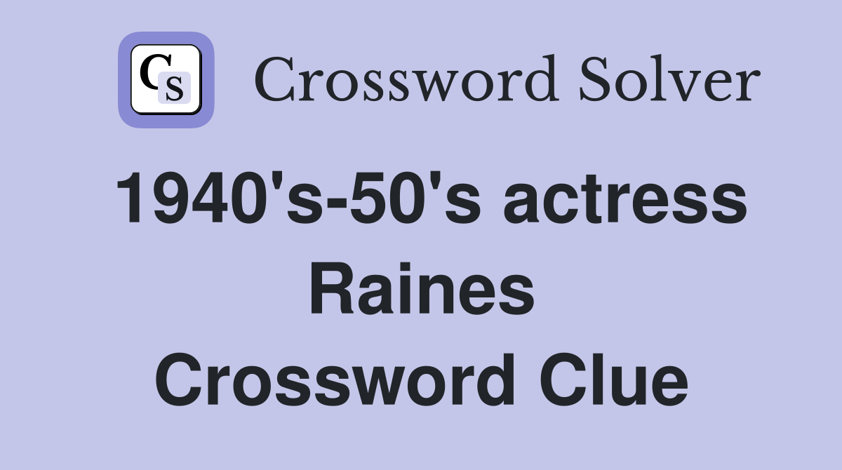 1940 s 50 s actress Raines Crossword Clue Answers Crossword Solver