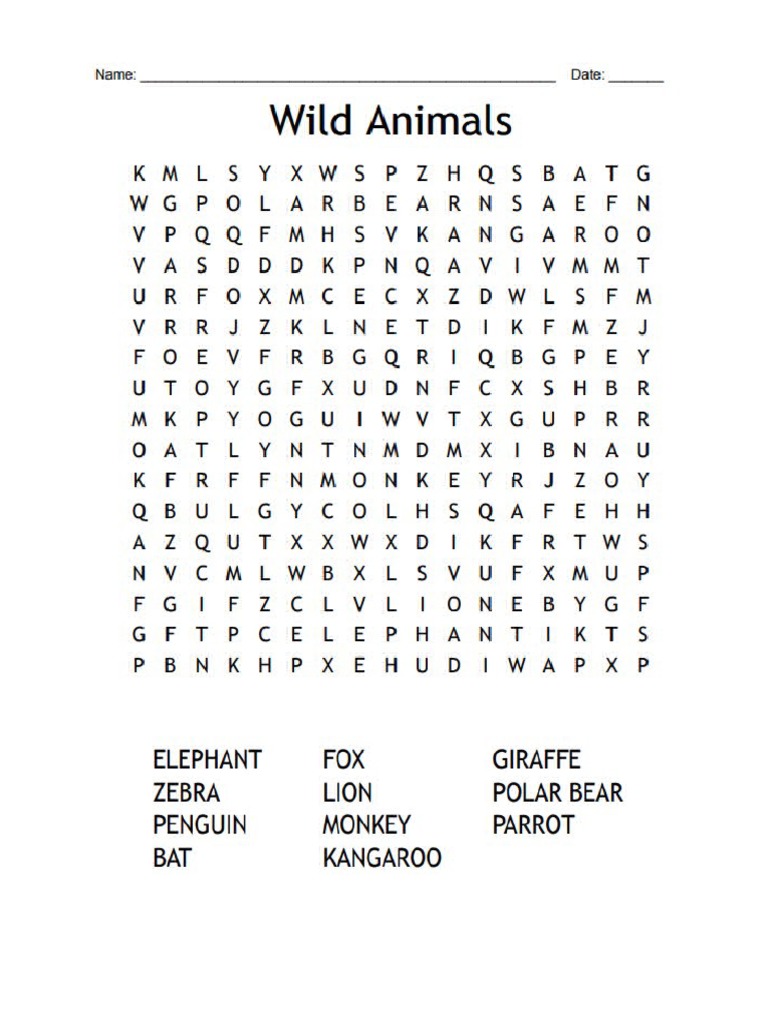 Wild animals crossword puzzle