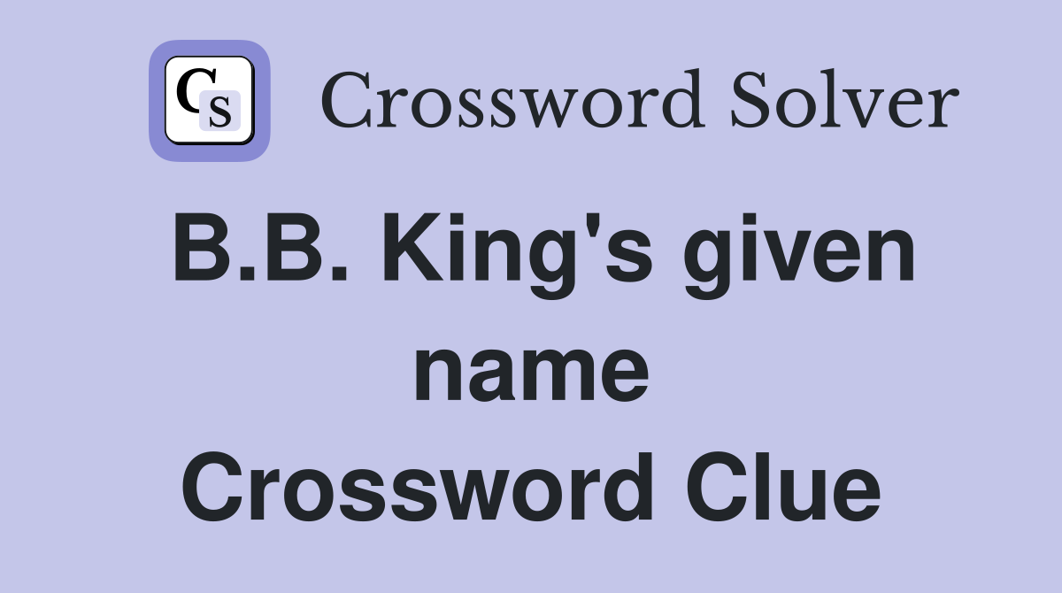 B B King #39 s given name Crossword Clue Answers Crossword Solver