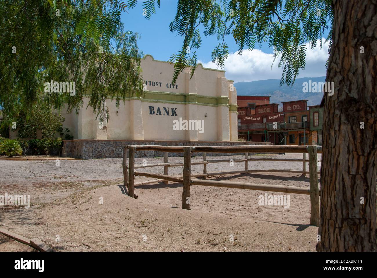 Bank on a Wild West film set Stock Photo Alamy