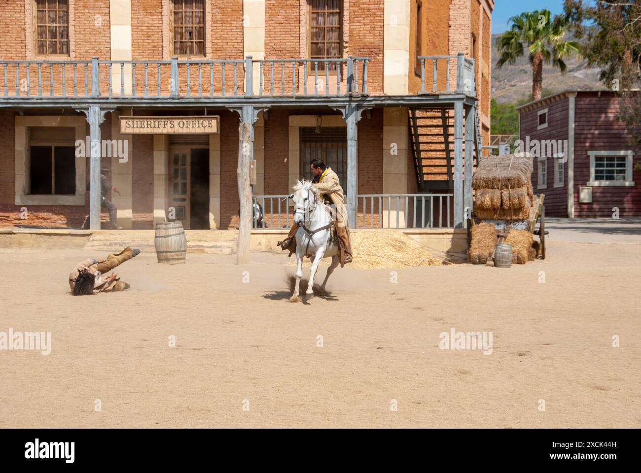 Cowboys on a Wild West Film Set Stock Photo Alamy