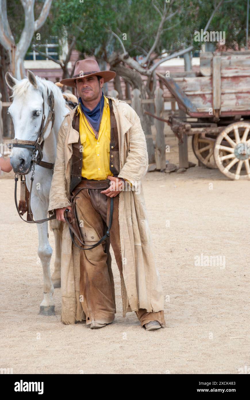 Cowboy and his horse on a Wild West Film Set Stock Photo Alamy