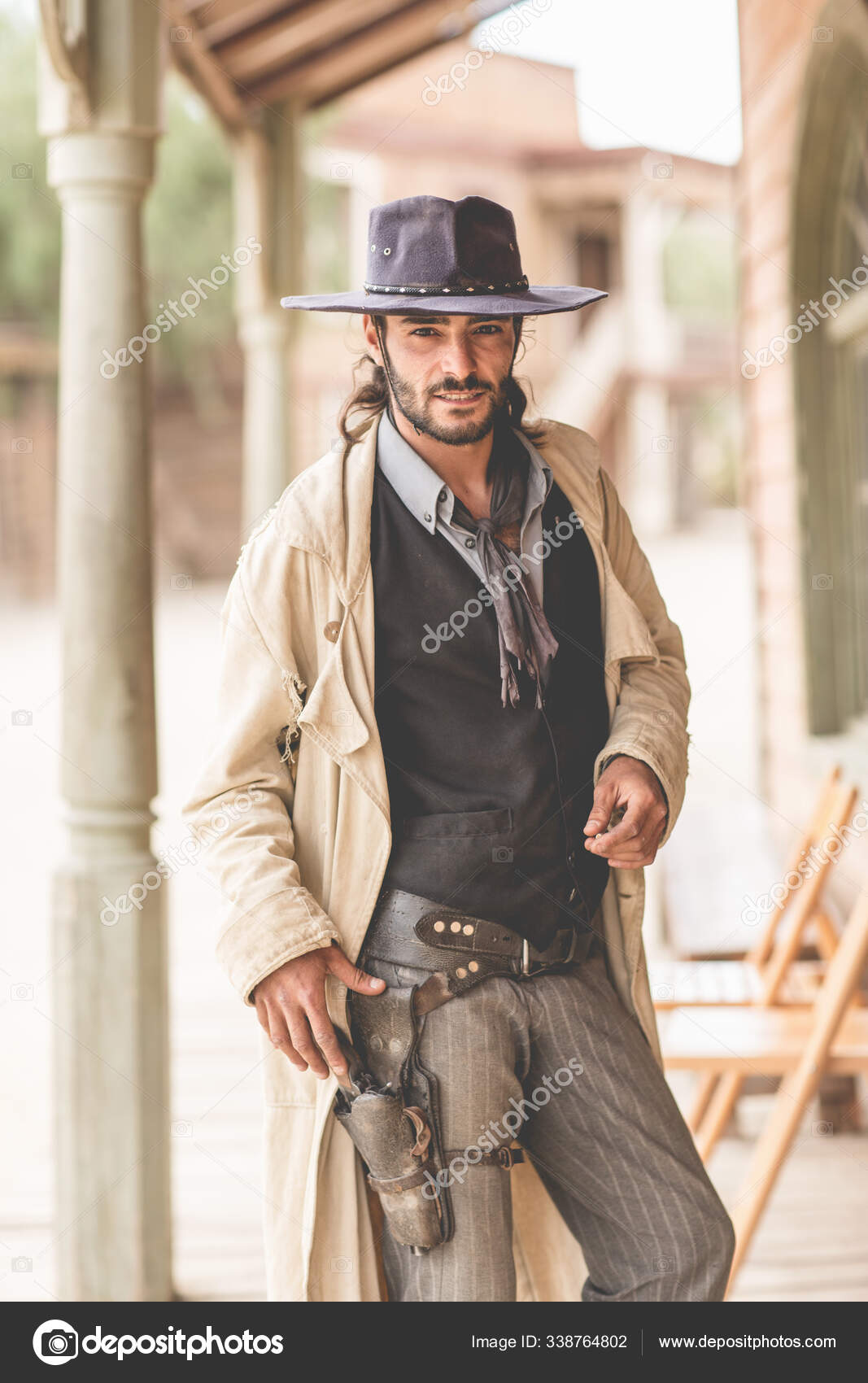 Portrait Cowboy Porch Wild West Film Set Fort Bravo Tabernas Stock