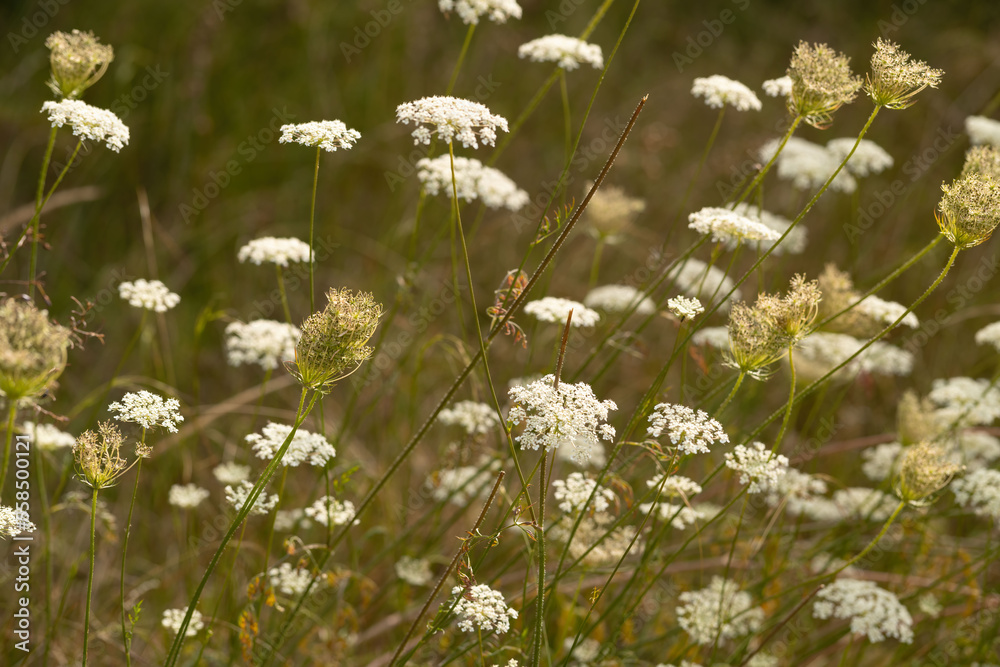 Wild carrot Daucus carota in a late blooming wildflower meadow at