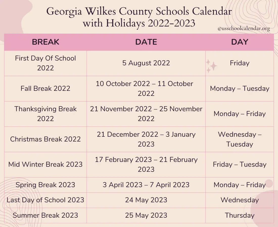 Georgia Wilkes County Schools Calendar 2023 US School Calendar