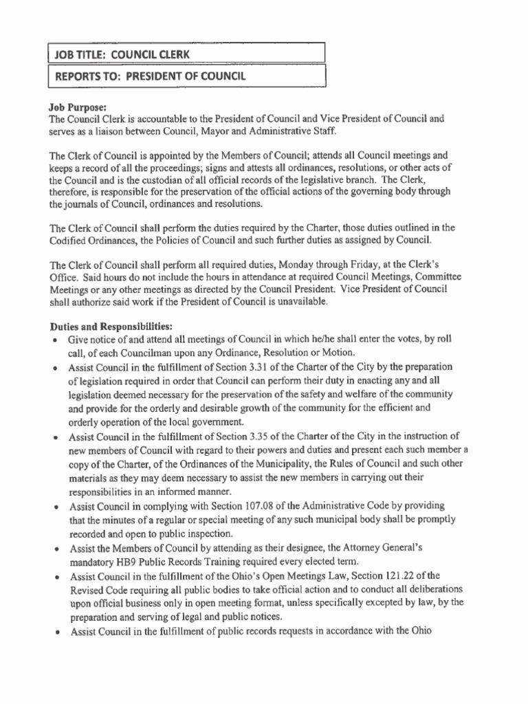 Willoughby Hills FT Clerk of Council Position PDF