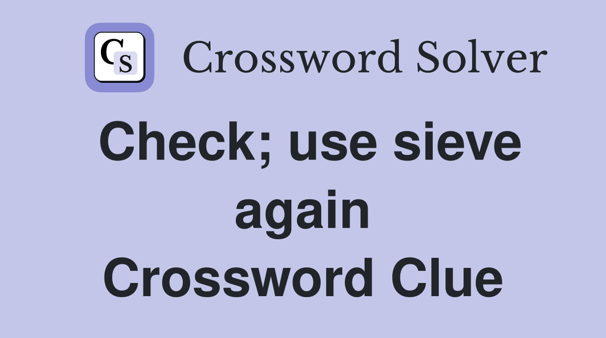 Check use sieve again Crossword Clue Answers Crossword Solver