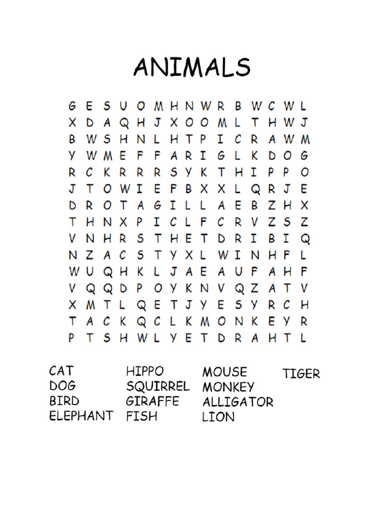 Animal Word Search Printable prntbl concejomunicipaldechinu gov co