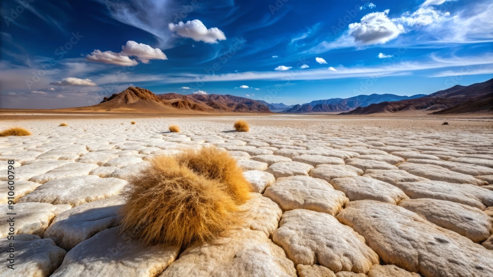 Arid semi desert landscape featuring a puff solonchak with wind blown