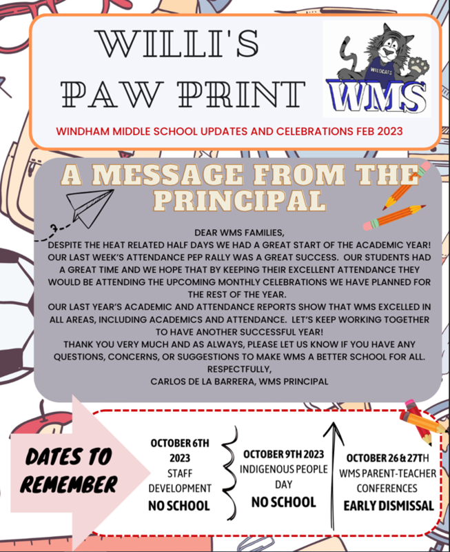 Willi #39 s Paw Print Newsletter Oct 2023 Windham Middle School