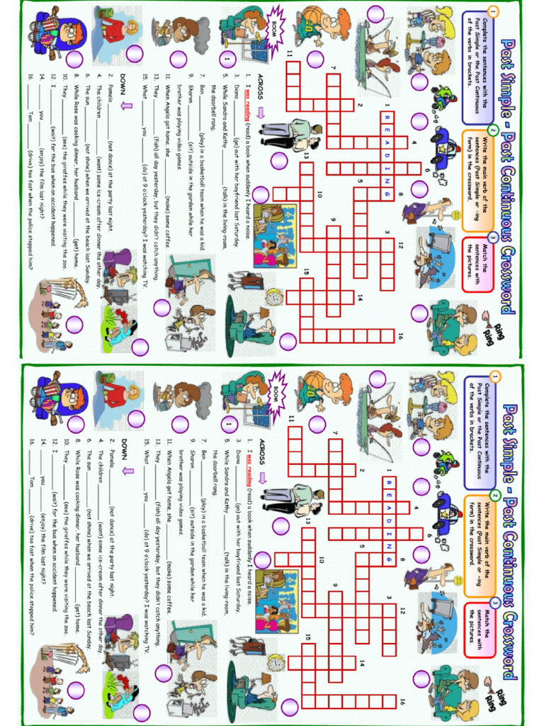 Past Simple and Cont Crossword PDF