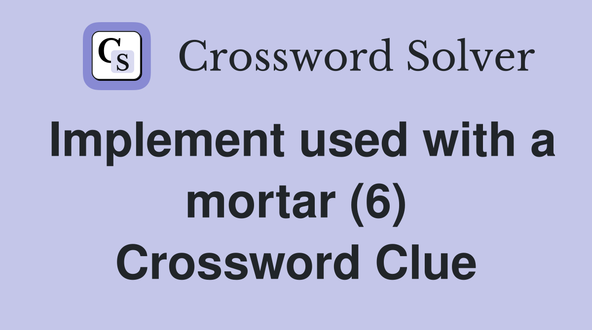 Implement used with a mortar (6) Crossword Clue Answers Crossword