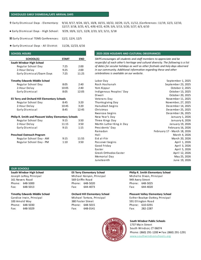 South Windsor Public Schools Calendar 2025 2026