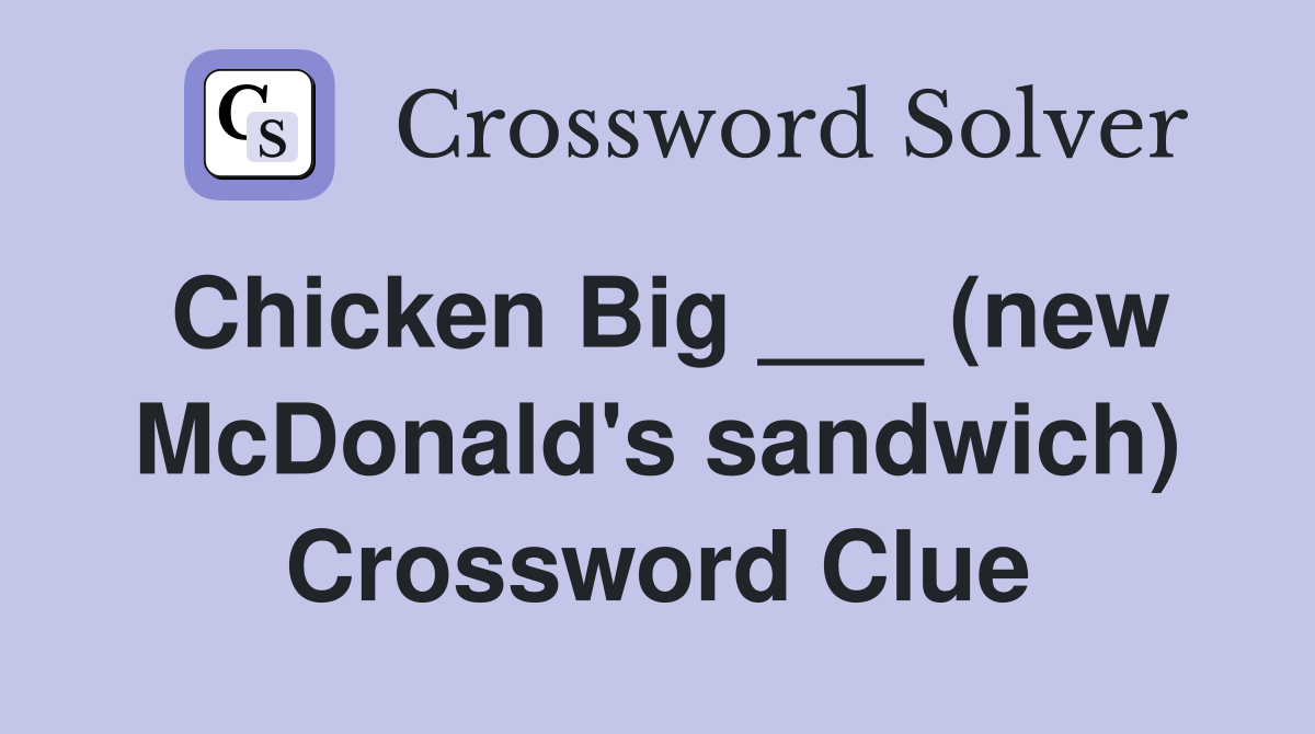 Chicken Big (new McDonald #39 s sandwich) Crossword Clue Answers