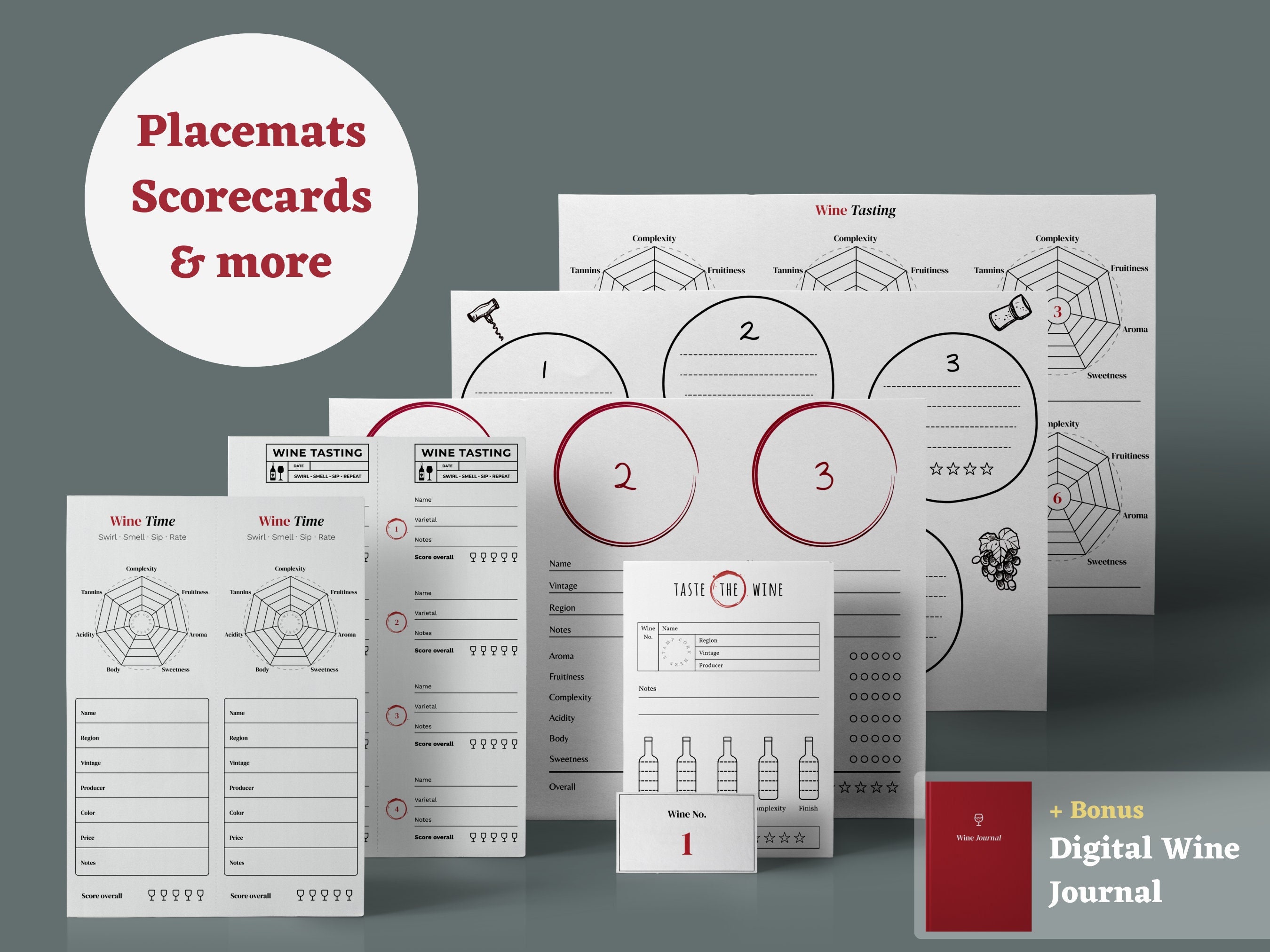 Wine Tasting Printables Megabundle: Placemats Score Cards More for