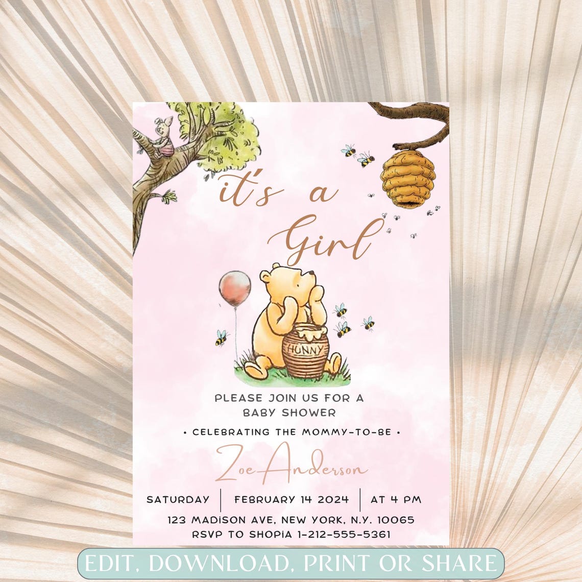 Editable Winnie the Pooh Baby Shower Invitation Pink Winnie the Pooh