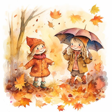 Quirky Autumn Kid Clipart 10 High Res Watercolor Jpgs Junk Journaling