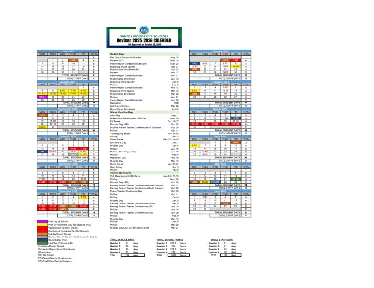 Winton Woods City Schools Calendar Revised 25 26 PDF EduCounty